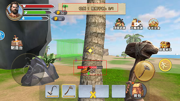 3、荒岛狩猎风险极高,务必打造能抵御野兽与怪物的武器,从而保障在海上得以生存。