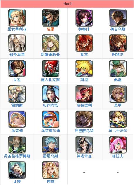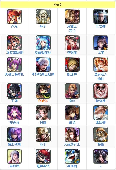三、综合实力最强角色(Tier),相关信息早已在表中呈现。