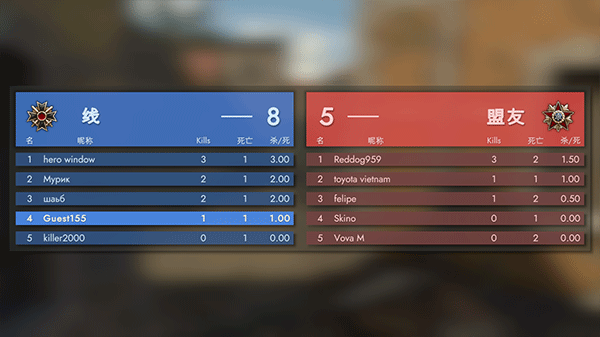 6、最后,在规定时间内尽可能多地击杀敌人。游戏界面上方会实时显示比分,最终比分较高的一方将赢得游戏胜利。