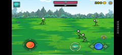 3、上方红色血条表示敌方血量,蓝色血条表示自身血量。在此处,你击杀的火柴人数量越多,获得的金币也就越多。
