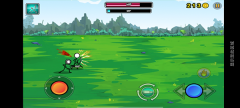 2、开启游戏,左侧轮盘能够操控火柴人的方向,右侧的绿色按钮用于射箭,左右箭头则是控制射箭方向的。