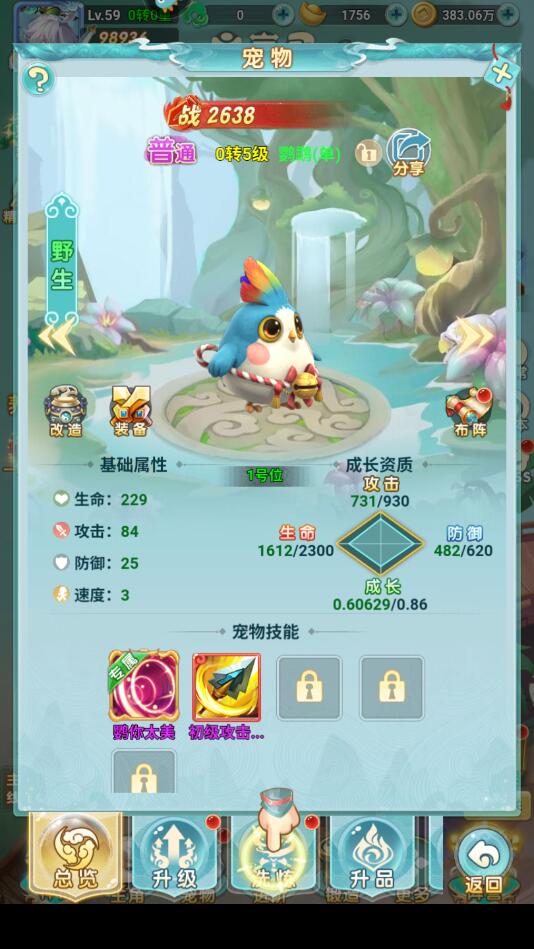 进入到宠物系统后我们可以通过升级、洗炼、升品来提升成长资质