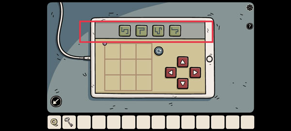 3、在一楼将充电器插上平板,根据白色纸条进行按键获得上方的文字提示。