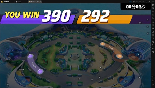 比赛剩余1分半,我方队伍中有两位宝可梦一同站在门口树下,可以将比赛时间延长两分钟,双方两边最多可以延长两次时间,两次后数就会消失。所以要特别留意时间以及打掉对方门口的树,千万别给翻盘续命的机会了。