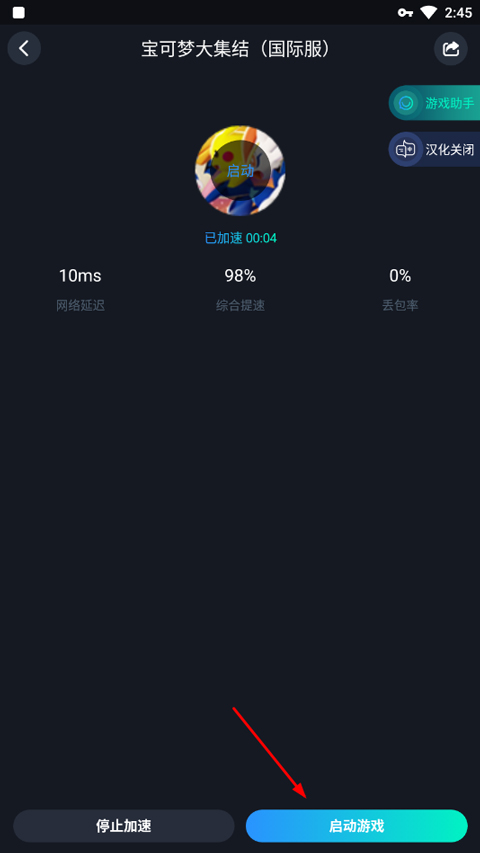 1、首先打开CC加速器,然后加速Pokemon Unite国际版,即Pokémon UNITE,选择加速线路;