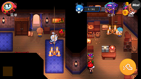 7、如图所示,此时已进入储藏室。要是看到有发光的物品,可走近并点击行动按钮,一般都能发现有用之物,比如金币、药水,甚至可能是稀有的宝石。