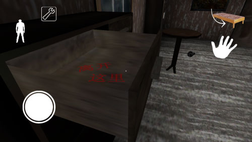 这里是出生房,当靠近床的时候,点击右上角就能躲到床下,衣柜同样也能藏身其中。床头柜左边的抽屉里,写着三行红字:Leave this house(离开这个房子),而右边的抽屉通常不会刷出物品。在这个房间里,仅有花瓶以及放置花瓶的桌子能够被推倒,花瓶还能拿起来扔到地上。到了Day2(第二天),出生房的门会被锁住,所以得通过扔花瓶或者推倒桌子来吸引奶奶过来,接着赶紧躲到床下或者衣柜里,等奶奶离开。