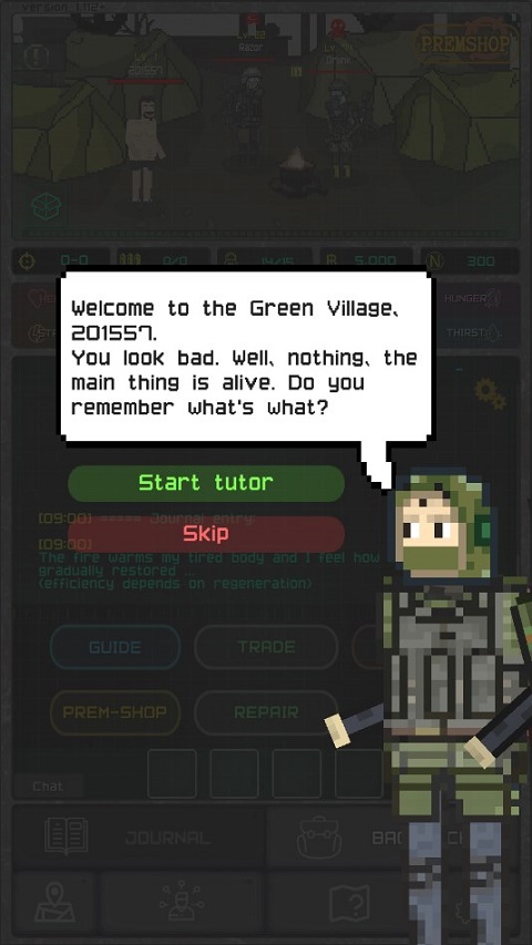 5、游戏刚开始会有新手引导,只是由于它是英文的,所以小编暂时先不聊这个。就我个人来说,我选择前军人这个角色,原因在于军人具备较高的活力以及适度的敏捷性,然而在智力和运气[b][技能]方面有所欠缺。