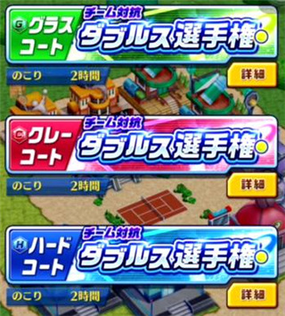 比赛是分为三种场地,草地,红土,硬地。比赛形式是以双打进行,所以玩家可以找好自己的队友,选择好擅长场地,来进行比赛。打每一种场地的比赛会获得相应颜色的素材。