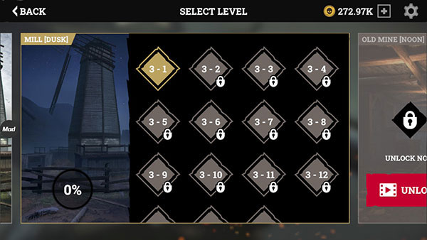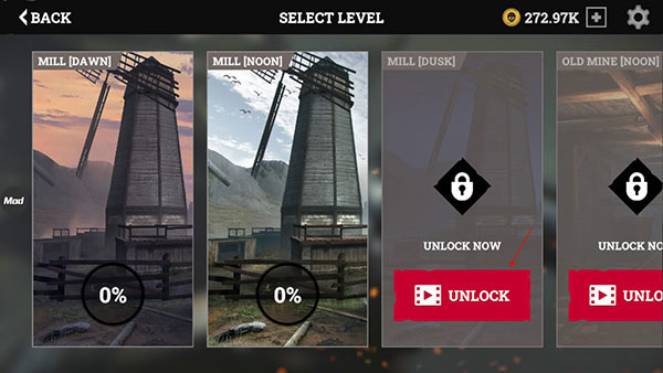 3、这里有众多地图,分为简单、容易、困难等不同难度。若你想提前体验,点击红色视频按钮即可直接解锁。