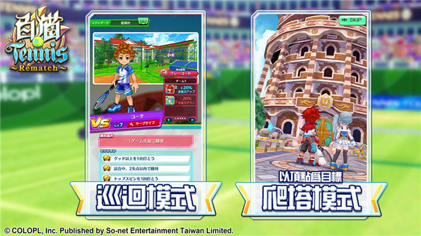 3、透过单指操作轻松移动与发动技能,玩家可自由与朋友进行单打或双打,“友情对战”打造角色 培养专属网球选手。