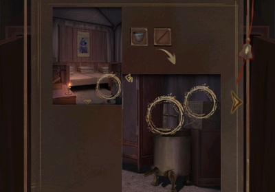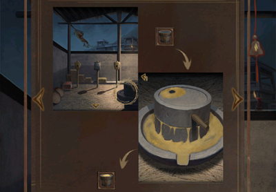 29、在箱子里获取道具铜压杆与木制轮毂,接着前往压水台,把铜压杆安装妥当,再将空木桶放在压水台下方,点击压杆压水,直至木桶被水装满。