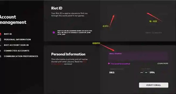 1、访问网址https://account.riotgames.com/account,点击并输入已注册好的账号进行登录。