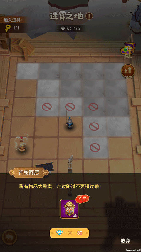 通关规则如下:迷雾境地总共设置了5个关卡。每一轮关卡都包含35个格子,每个格子均会触发随机事件。玩家需通过探索翻开迷雾笼罩的格子,找到通关钥匙,如此便能通往下一个关卡。其中,最后一个关卡是BOSS关,只有成功打败BOSS,才算成功通关。