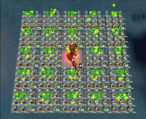 召唤半径3米剑阵,范围内每秒造成46%攻击力的伤害,且自身和士兵获得10%减伤效果与3%生命回复,持续5秒,冷却时间9秒