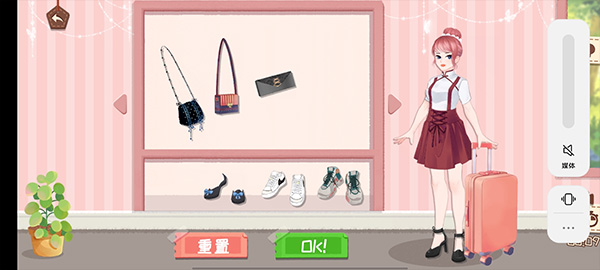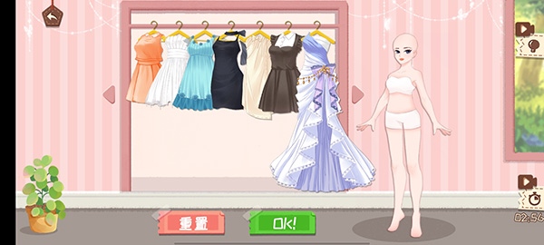 4、接下来,咱们进入服装搭配环节,为这位美女挑选并换上漂亮的衣服。点击衣架右侧的箭头,就能滑动查看下一排的服装饰品哦。