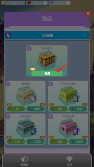 2、找到商店中的经理箱,点击免费盒子。