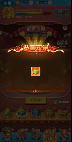 2、开启每个宝箱都可以获得宝箱积分,积分达到一定数量后,可以重新用来兑换新的宝箱