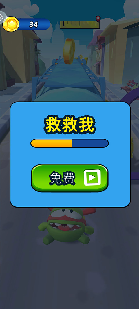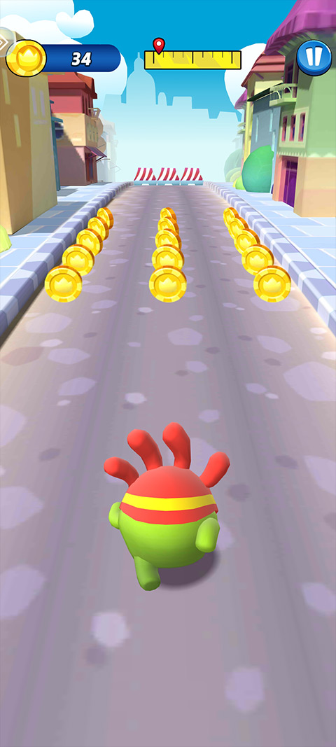 2、进入跑酷模式,玩家控制小怪兽完成第一关的任务;