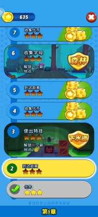 6、当玩家顺利通过第一关,便能解锁并查看后续关卡,而且每个关卡的场景主题均不相同。