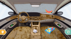 4、接着点击绿色按钮,把座椅升起来,拿起右边的清洁剂,将车内整体喷洒一遍,随后用左边的抹布擦拭干净。