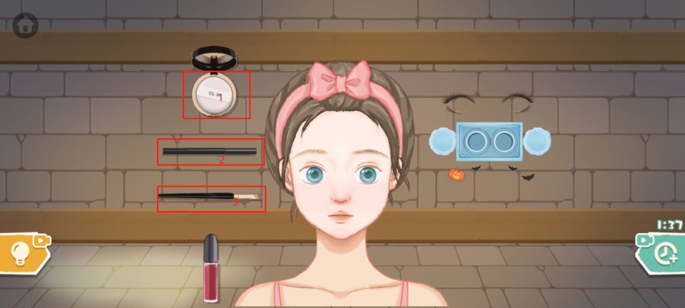 3、【一起捣蛋】关卡需要cos万圣小魔女,首先打开美瞳盒子,将美瞳依次戴上