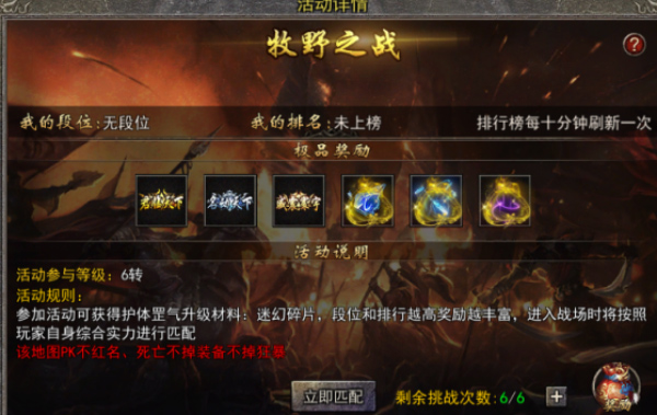 封神大陆,是一片以力量为绝对尊崇的大陆。在这片土地上,武力备受人们推崇。故而,每日这片大陆上的勇士们都会展开一场牧野之战。战斗形式为玩家们三三成组进行对战,而最终获胜的玩家,将会收获极为丰厚的修炼资源。