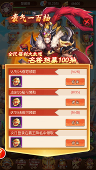 2、游戏线上福利+线下活动能获得100张高级抽,可以弄个好的开局号,然后主养抽到的最好的武将。