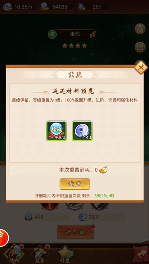 10、游戏前期务必着重培养一名武将,切勿贪多,因为资源或许会不足。游戏前期赠送的关羽和华佗都颇具培养价值,建议将其提升至10星或9星。9星武将重置时能返还全部资源,而10星武将可作为“狗粮”,助力其他武将升至11星。