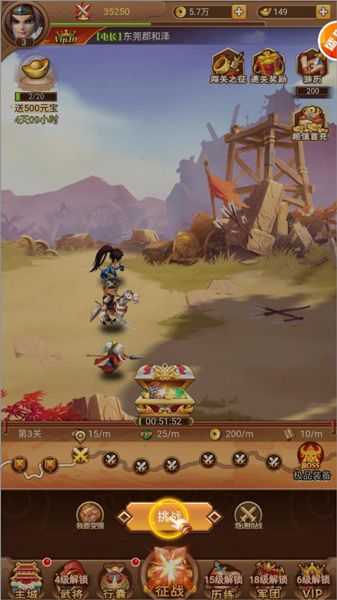 2、玩家成功挑战通关后,能获取经验与金币,这些可用于武将升级。在游戏过程中所获得的装备,武将能够穿戴,进而提升武将的各项属性。