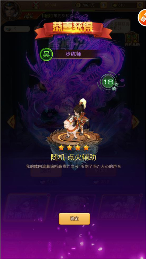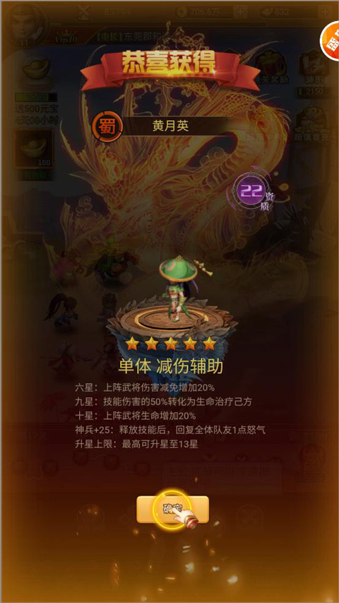 2、玩家在战斗过程中,通过积累经验、金币及其他道具,成功挑战通关后就能获得武将。
