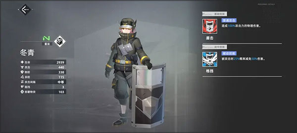 n卡冬青,没什么特别的,不吃资源,能抗,复活快,对技能点几乎没有要求,实用,60级拉满吃的资源比ssr少一半,直接拉满就行。
