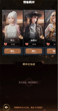 前期工作仅聚焦互联网行业,全力以赴争取成为轮值董事,毕竟当下这份工作的收入最为可观。当你的投资达到一千多级,便能依靠利息维持生活!等你成为富豪,就该考虑找几位美女一起畅谈人生啦。此刻,我们为大佬们准备了另一种玩法——情缘系统。在这里,你可以给美女们赠送礼物,礼物越精美,妹子对你的亲密度就越高,对你愈发依赖,进而让你享受到更优质的待遇,提升你的精力以及其他属性加成。不过呢,要跟各位大佬说明一下,赠送美女高档礼物是有前置条件的,大佬们可依据自身实际情况选择相应礼物。而且,每个美女的亲密度和属性加成不会因轮回而消失,所以大佬们尽可放心大胆地送礼物。