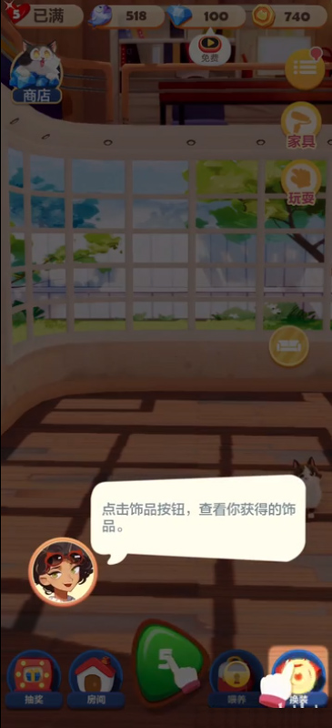 2、猫咪会一直陪伴在你身边。记得按时给它喂食和洗澡哦。此外,你还能与猫咪嬉戏、为它装扮,然后一起拍照留念!