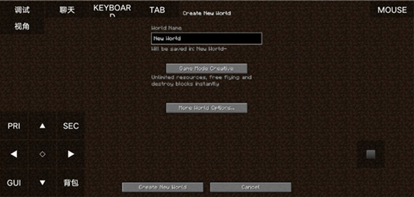 7、进入此界面后选择你的游戏模式以及名称并点击下方的“create new world”;