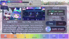 在这个小游戏中Lemo和Yuni两人会以一组舞步来示意接下来要求让玩家输入的箭头(两侧,上下左右)。