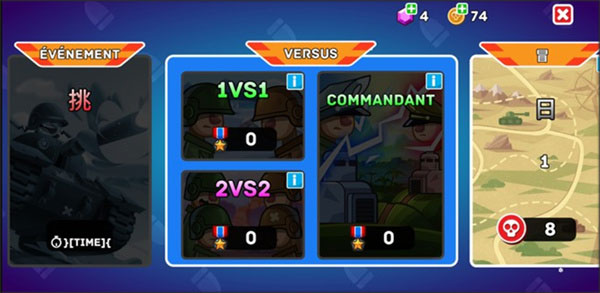 3、三种战斗模式,分别是闯关模式、PK模式、挑战模式。