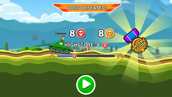 除此之外,在《HillsofSteel》游戏里,玩家要借助界面中的左右按钮来操控坦克前后移动,通过上下按钮控制坦克的发射方向。驾驶好坦克,与对手展开正面交锋。利用场地高低起伏的特点,在躲避敌方攻击的同时,精准射击敌人并将其歼灭,从而赢得金币奖励,用以对战车进行升级。不仅如此,玩家还能够解锁穿甲坦克、导弹坦克以及光能坦克等各类强大的坦克,还有更多的地形图。进而挑战更高难度的关卡与强劲的boss,感受全新且有趣的战斗乐趣!