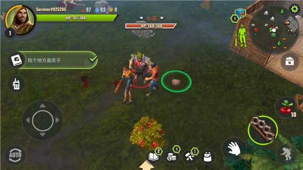 1、游戏开始,先去收集一些树枝,制作一件武器,接着把家附近的丧尸清理掉。之后到车上取一把刀,再制造几块地板放置在地面上(这是系统任务,不完成就无法离开当前地图)。完成这些后离开地图,会看到左右两边各有一片区域,左边是石头地,右边是树林。