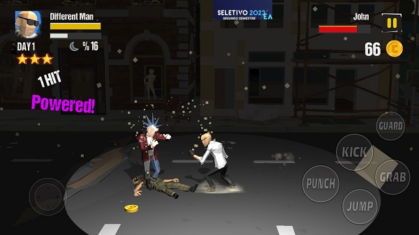游戏采用闯关模式,关卡中对手出现的位置会不断变化,强度也逐步提升。目前设有白天与黑夜两种作战场景,白天场景对手强度稍低,玩家能借此阶段练习格斗技巧,熟练掌握各类连招。而黑夜场景,对手强度有显著质变,部分成员还会手持棍棒刀剑,除玩家所在区域外,其余部分呈现“迷雾”状态,挑战难度大幅攀升。