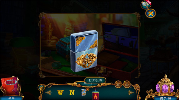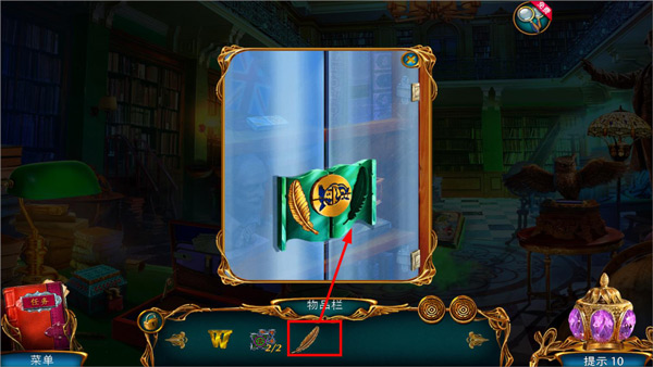 13、点击远处的橱柜,将金属羽毛放上,获得N的金属标志,还有上方空的打火机。
