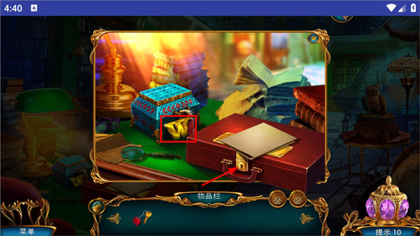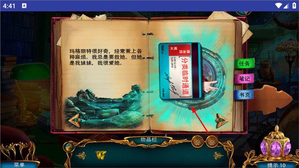 3、点击面前的桌子,从上面拿到金色的W。接着,用刚刚从妹妹那里得到的钥匙,打开箱子,获取任务书。持续翻页,直至最后一页,得到通行卡。