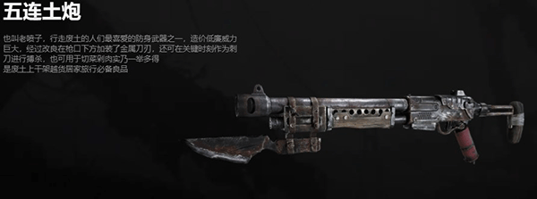 五连火炮堪称小编钟爱的武器之一。它虽没有极致精致的外观,却满是废土朋克风格,令小编痴迷不已。游戏里,面对尸潮,它凭借高额伤害成为小编的心头好。而且,枪管下方的刀刃实用性极强,无疑是大家在代号56世界中,无论是日常出行,还是与人争斗时的必备利器。