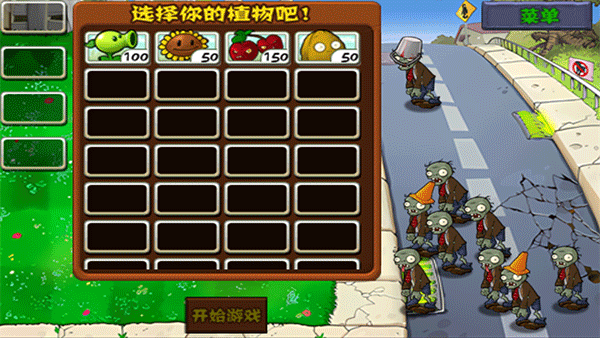 2、进入一个模式后,玩家们需要先选择合适的植物,选择完成后点击开始游戏