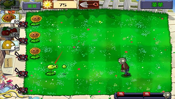 5、当僵尸出现时,就需要种植待攻击性的植物来对战僵尸,并将僵尸击杀