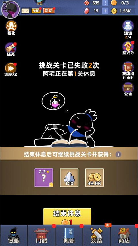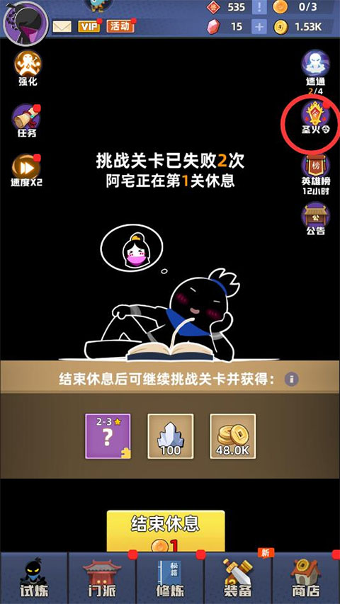 1、首先就是关卡挑战,通关到提指定的关卡可以获取一定的宝石奖励