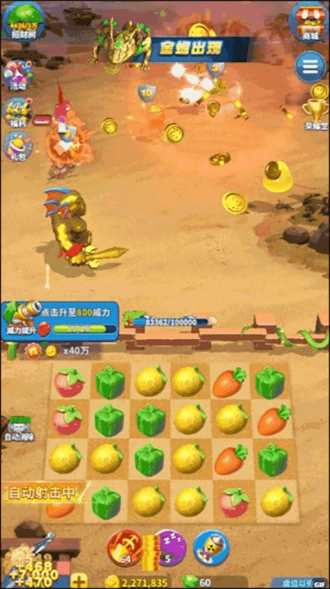【创新玩法】射击与消除激情碰撞!在同一屏幕上,既能畅快消除水果,又能战斗击退海妖!