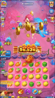 1、快速消除!每次消除都有几率生成水果弹攻击海妖,并有几率直接将其杀死。