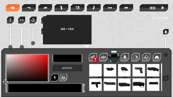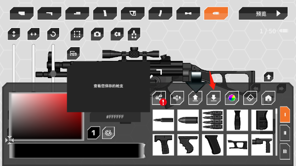 6、哦,对了。你能够点击左侧的滑板来设置枪的颜色,要是点击预览,就能查看这把枪的整体外观形象。
