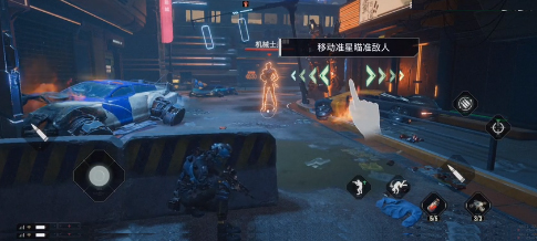 3、你需要操纵角色靠近遮挡物来掩护自己,注意看箭头位置;